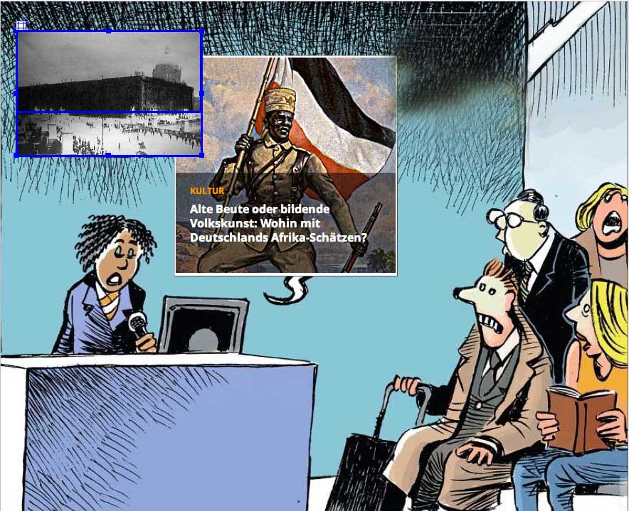 aber noch die Eröffnung der Lachnummer Europas. Ein Betonklotz für die koloniale. Raubkunst Europas in barocker Maske genannt Humboldt-Form. In der Mitte des Kontinents. Des Humboldts der Völker-Verständigung aus Preussen selbst.