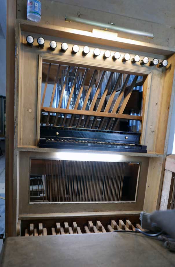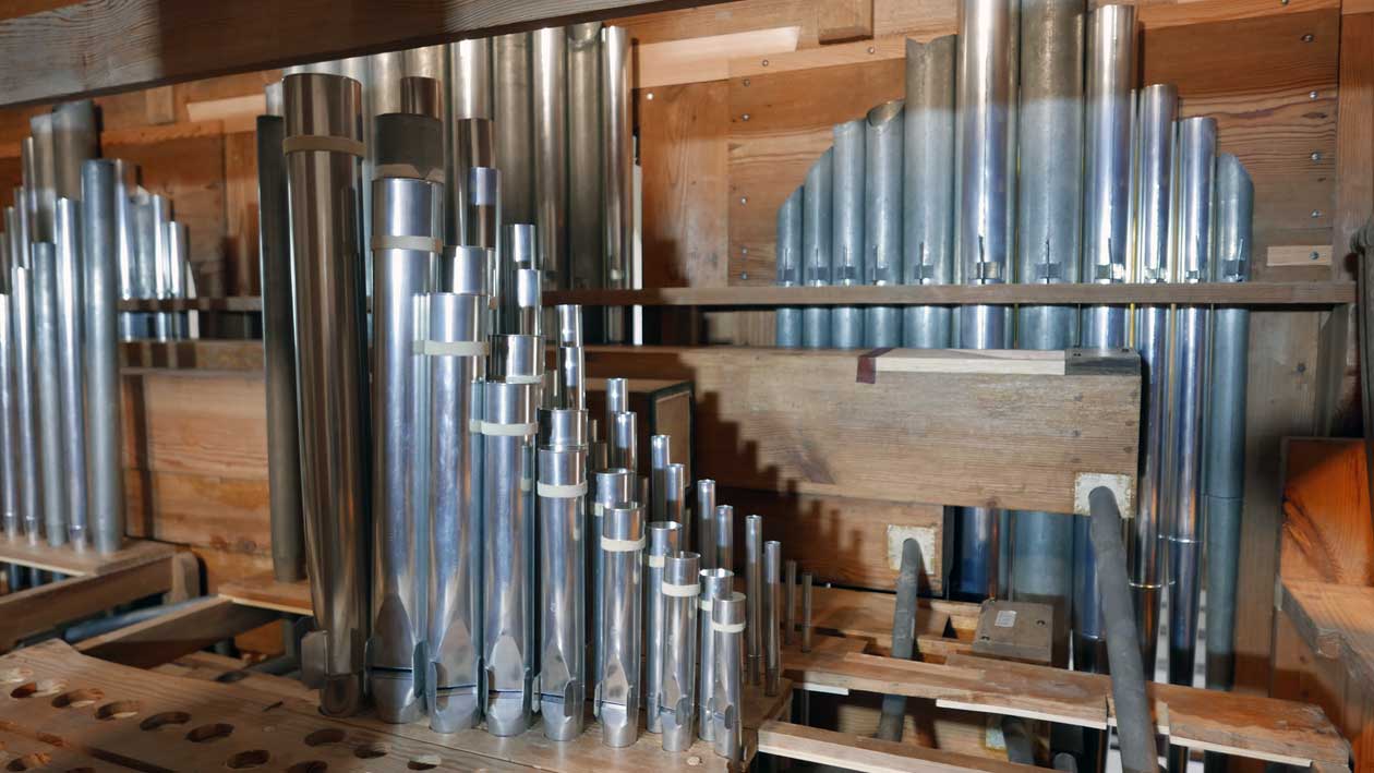 und daraus hinauf strömt es in die verschieden langen und gefassten Kammern zu pfeifen und sich zu vermengen