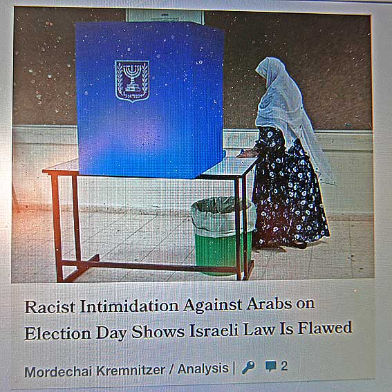 Die Apparate versgen: nur schwach ist es zu sehen wie eine arabische Frau in eine Wahl Urne mit israelischem Hoheitszeichen ihre Stimme geben darf.