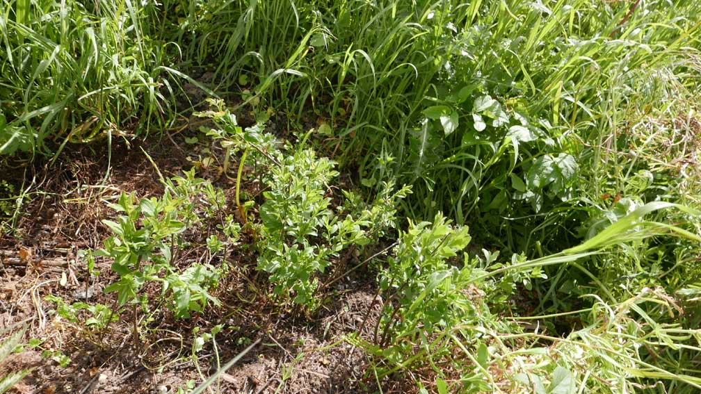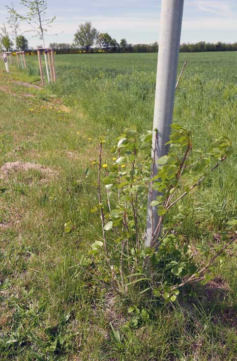 die neuen Triebe der Bienen-Sträucher auf der Strecke von Nossendorf nach Volksdorf hat die Strassenbaumeisertei des Kreises zu schützen entschieden.