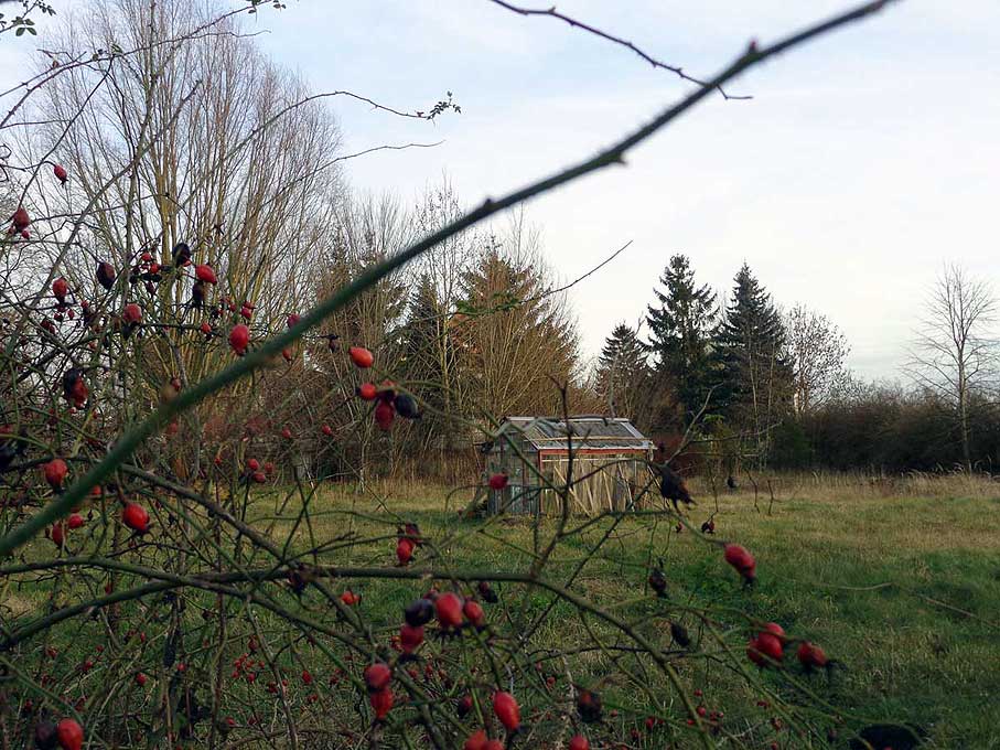 - an der Stelle des alten Grabens der Eiszeit - herandrängt. Und wo nun die Zukunft wieder versucht wird aus Klima-schützenden Bäumen. und Sträuchern aus Rosen. Für Bienen. Zusammen als Gesamtkonzept. Statt Vernichtung und Abrissen.
