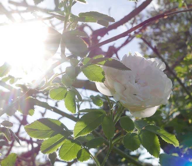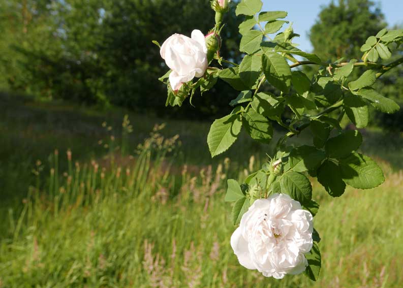 Wir aber hier und heute stehen im neuen Garten des alten Hauses und zählen die Rosen des Sommers die wieder durchkamen noch mal.