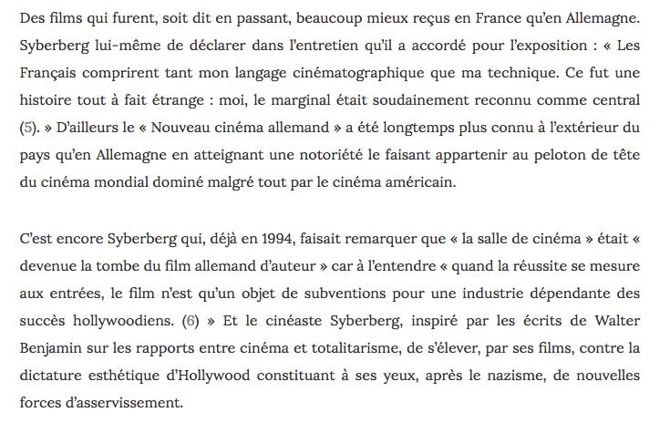 anlässlich der Ausstellung in der Akademie der schönen Künsten von München(Beat Presser Fotos und LvPlessen Texte)zur Zeit zur Erneuerung des deutschen Films nach dem Kriege in den 60er Jahren eine Stimme aus Frankreich noch mal. Wie sie das sehen von dort. Aus der automatischen Übersetzug im C.