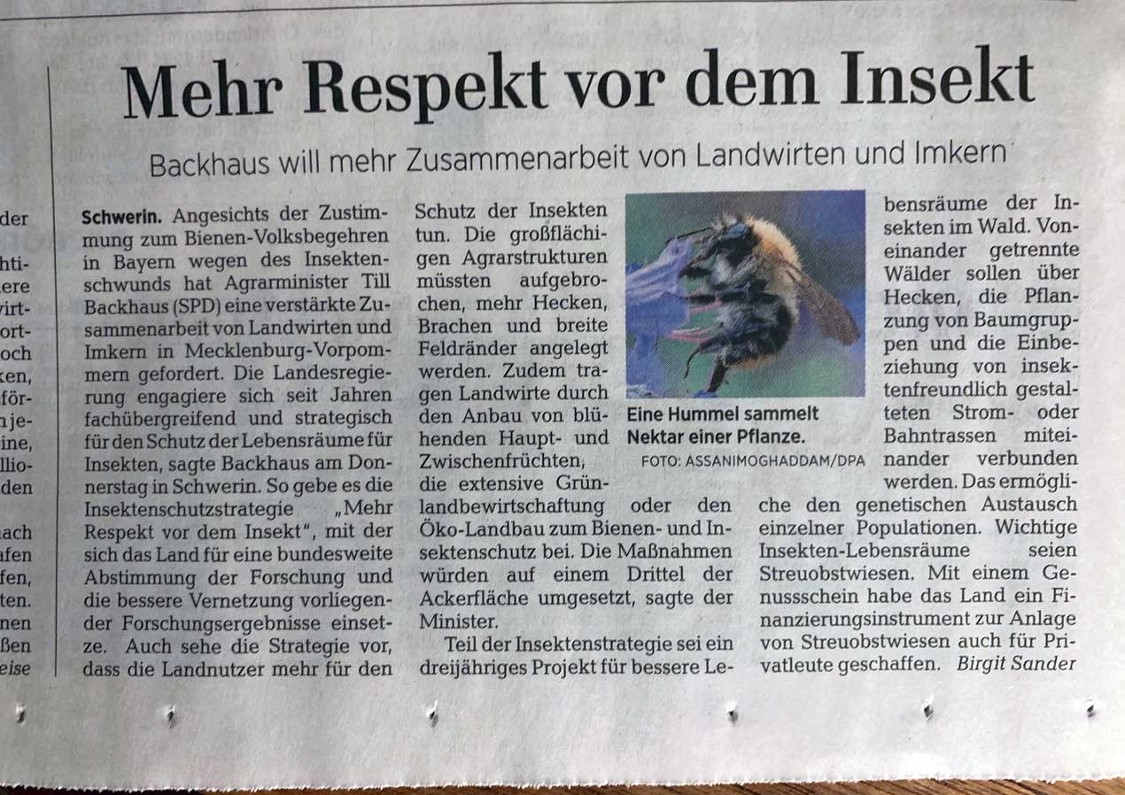 Bienen tot. Aber der Minister schreibt schöne Bekenntnisse. Weit genug weg, dass es niemand hier hört oder liest.