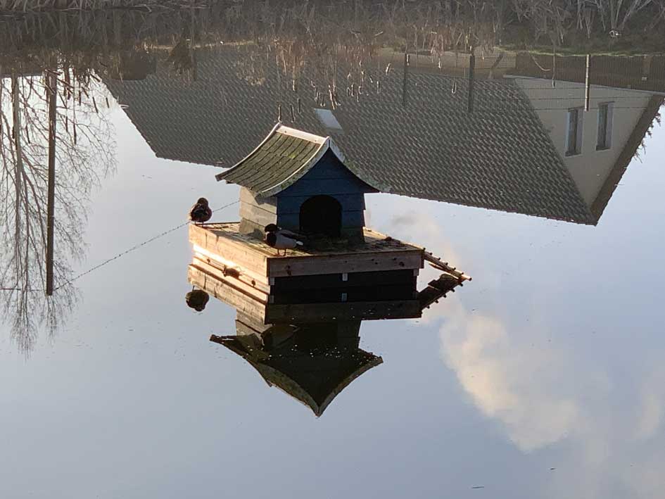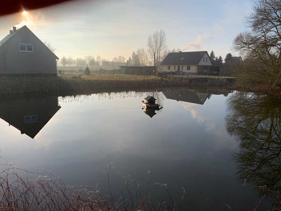 in Nossendorf im ruhigen Gewässer, den Wasservögeln ein Dach