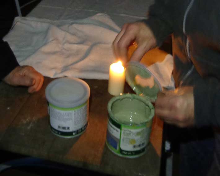 helles Erbsgrün die mittleren Felder und kreideweiss der Rahmen alles vorher grundiert