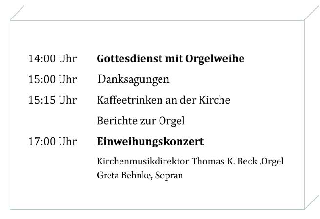 Noch ist die Orgel hier neu und muss sie aufsaugen die Geschichten des für sie neuen Dorfs. Erzählen wir sie ihr. Hier.