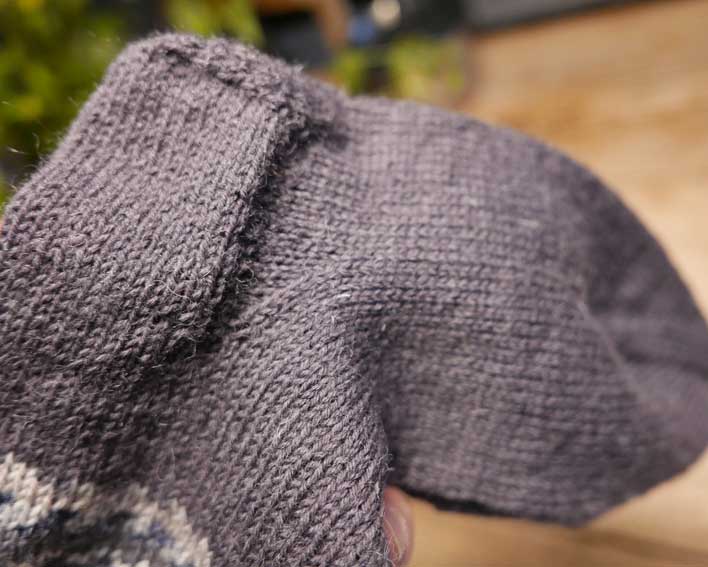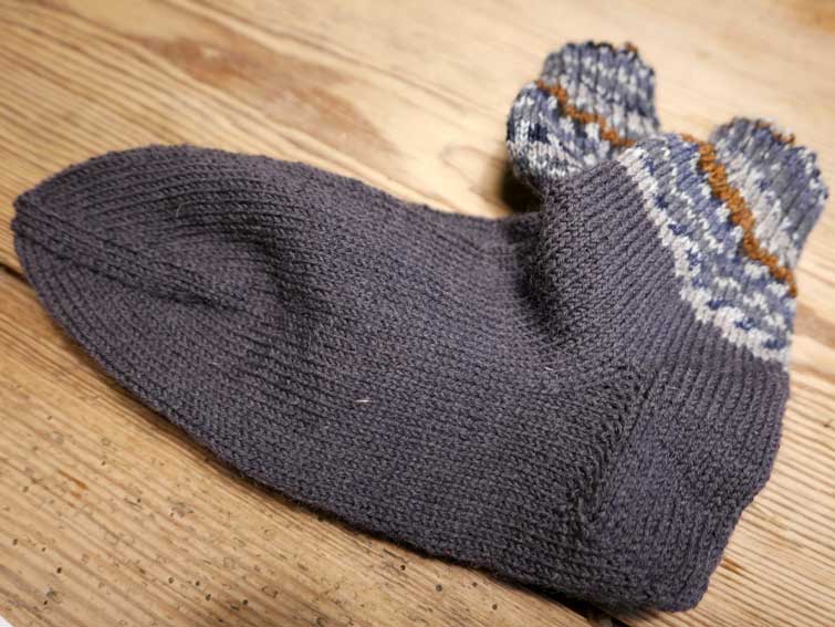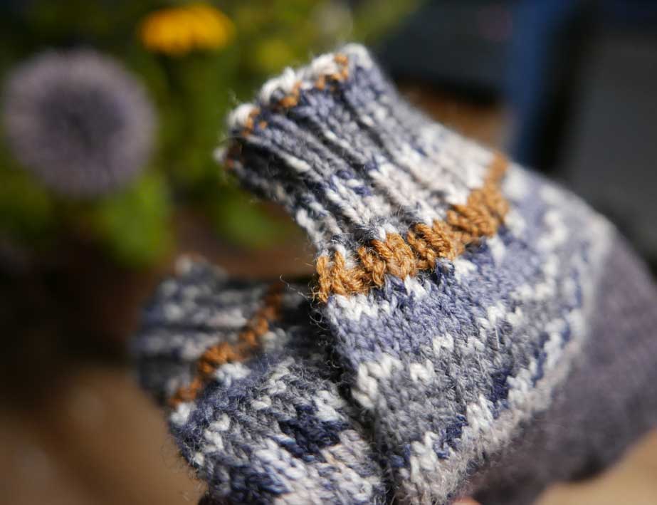 was sagen, fragen, am Ende im Gehen, ob sie noch, erinnere die alten Socken, meinen Liebsten, ja jeden Tag, und holt sie hervor einen Korb voll Socken, kann s nicht aufnehmen, ohne Kamera, aber einen mitgnommen.Jeder mit anderen Mustern aus dem Leben, Kunstwerke wie sie hier entstehen. Immer noch. Die Kindern nicht mehr. Basti, der Urenkel fährt schon Motorrad, Rennen, damals am Tisch, auf dem Schoss des Opas.