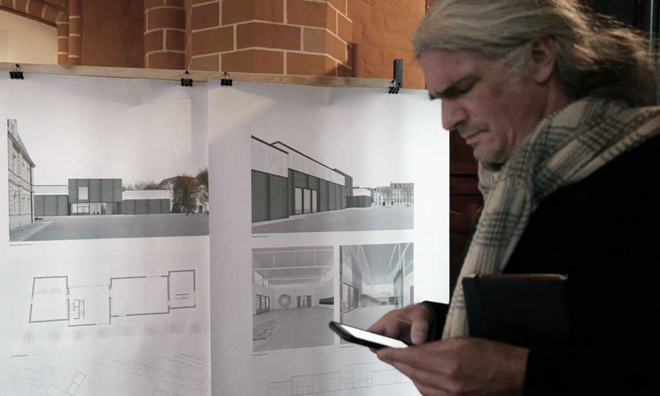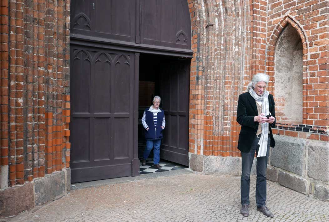 die Honoratioren aus Schwerin?"(die Frau mit dem Schlüssel zu den >Markt-Modellen in der Kirche)