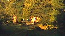 Es ist Sonnenaufgang. Und so wie rechts klein im Bild sieht am Morgen das ursprünglicheTor nun aus. Zuerst der Weg mit 3 Zäunen gesperrt, dann alles dahinter so gestrichen, dass das Tor davor überstrahlt von der Sonne nicht mehr Tor war. Nun täglich wieder hergestellt hier. Das Tor zu Kirche und Gräbern. Weg und Tor. Das Erste was wir hergestellt. Sinn finden, geben. Aber nicht machen. Vielleicht es zu Sein.
