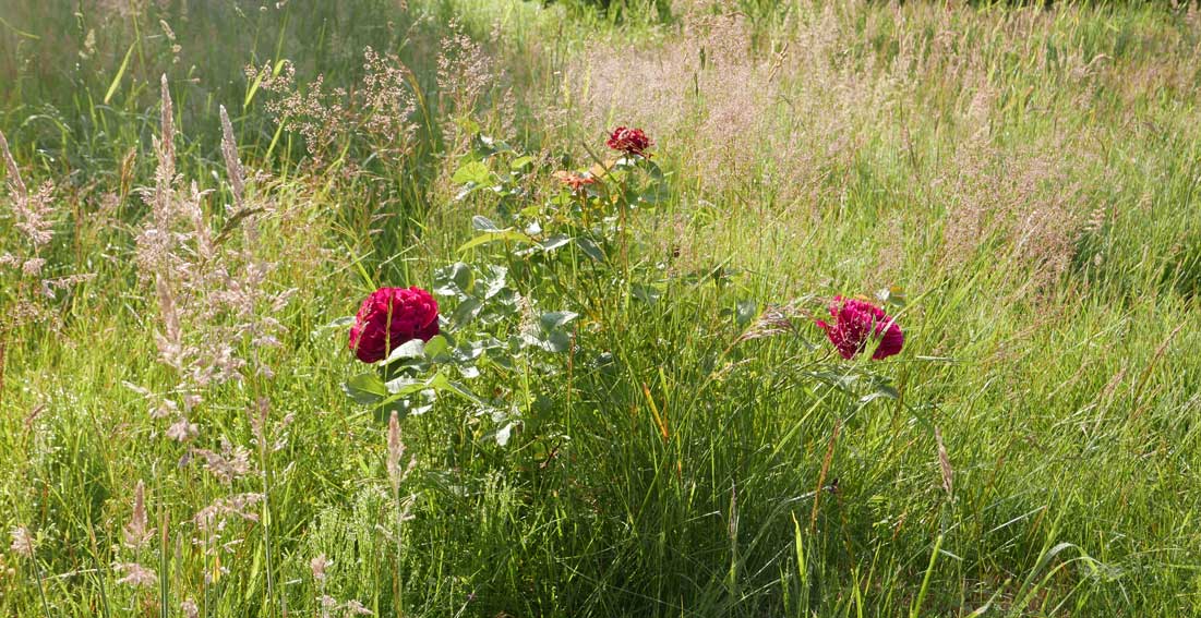 nun steht das Gras und die Wiesen blühen dazwischen die Rosen
