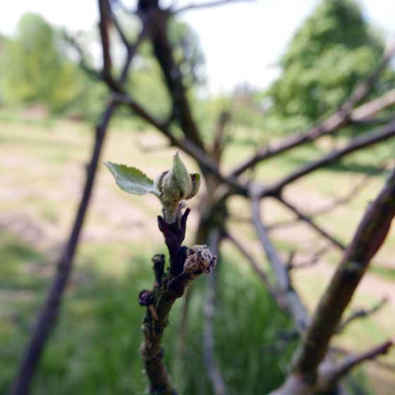 noch mal den Schrecken eines sterbenden Baums und daran diese einzige Knospe eben gerade