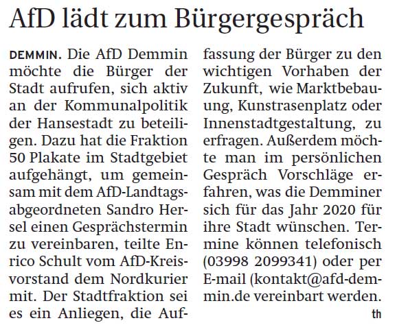 endlich also das am 31. Mai versprochene Forum der Bürger für Demmins Zukunft?