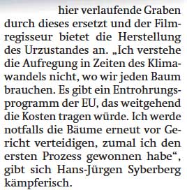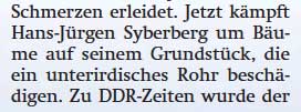 Das tote LPG Rohr aber als aktuelles Thema. Der letzte Anschlag der LPG und nun unter dem Mantel westlicher Gesetze. Ohne Wasser und ohne LPG. Gegen Bäume, die wieder gepflanzten. Mit der Beschuldigung alles wieder so wie früher zu wollen. Natur-Ausbeutung im Sinn. Da doch alles übereignet. Ihres.