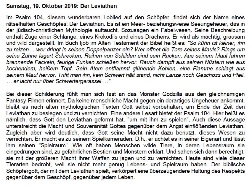 im Radio endet die Woche der Morgenandachten mit dem Kampf für die Kreatur so:
