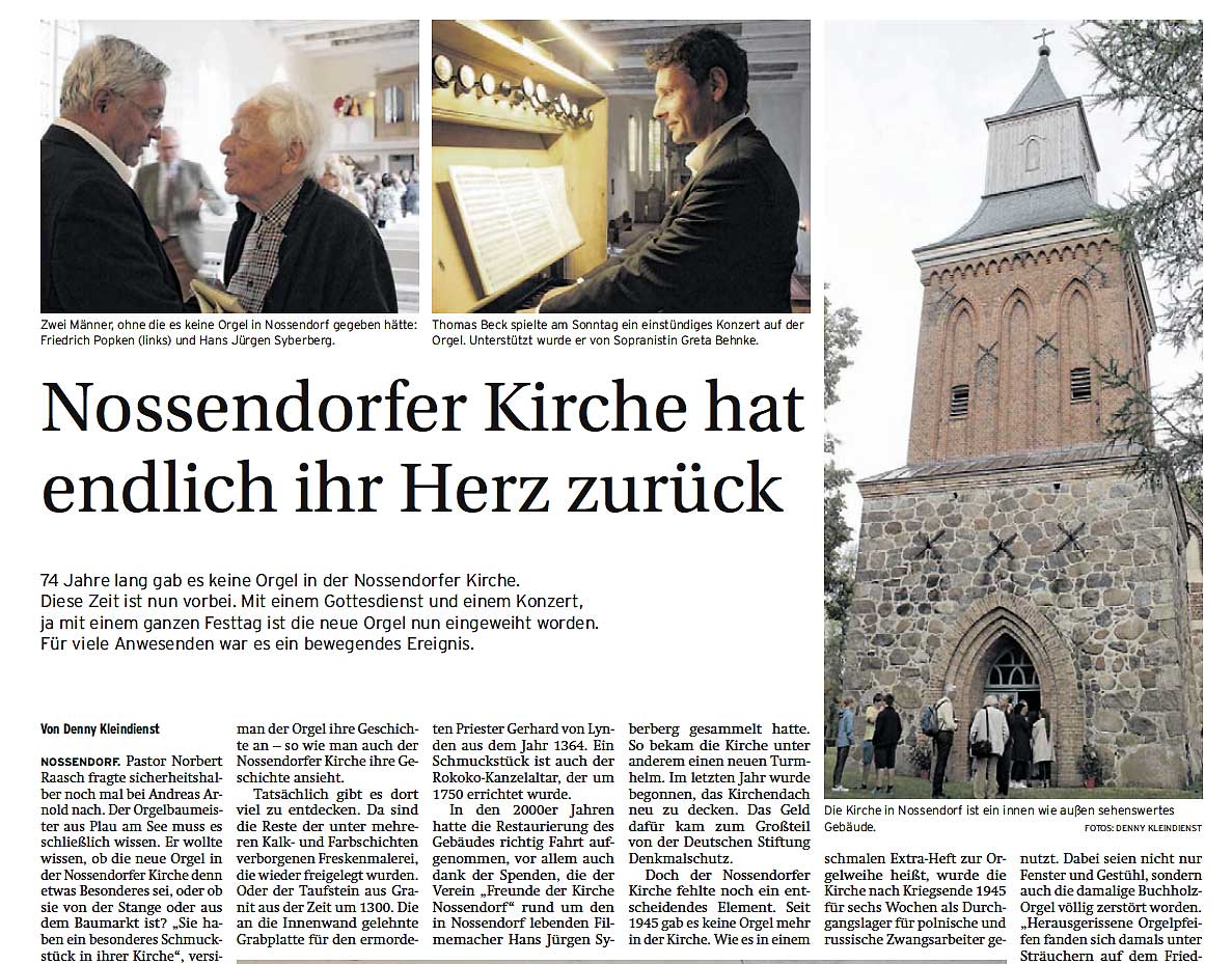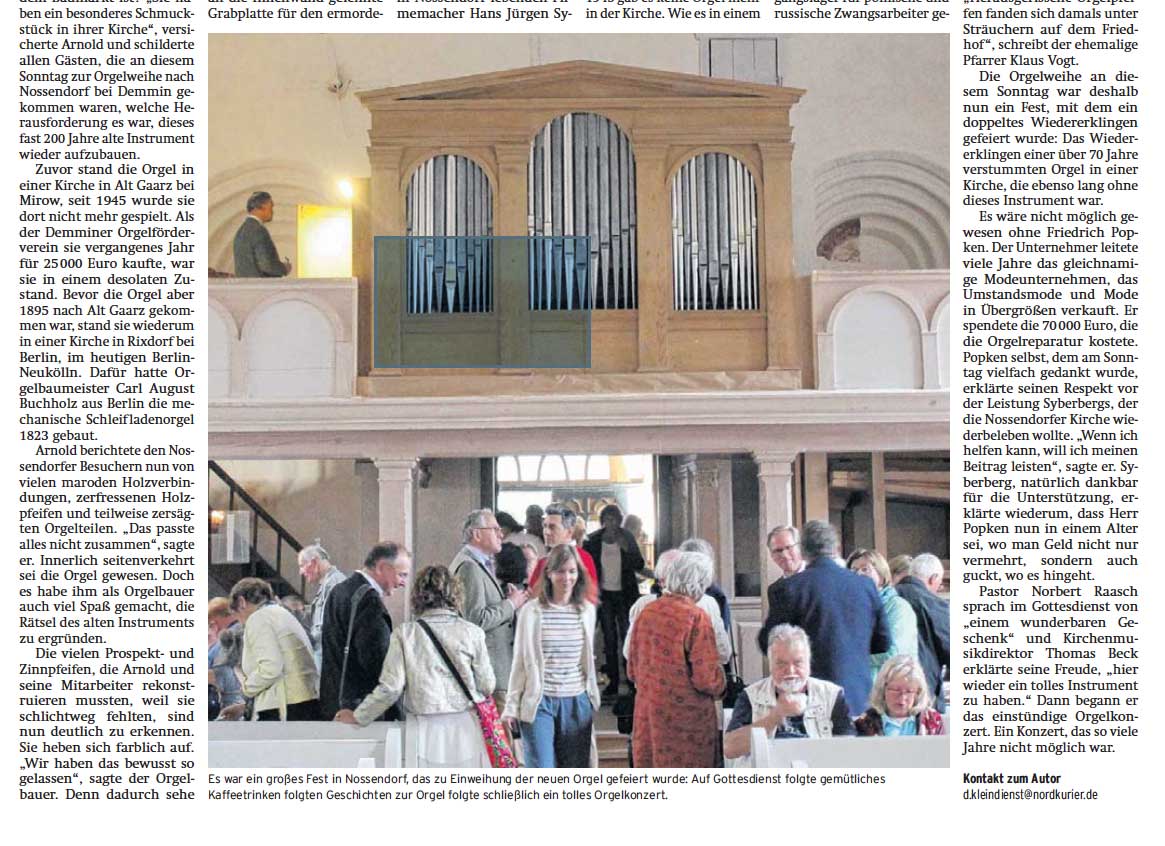wie es aber wirklich zu der Orgel gekommen ist, in Nossendorf, das ist noch ein ganze andere Geschichte, die mit diesen beiden Frauen zu tun hat.