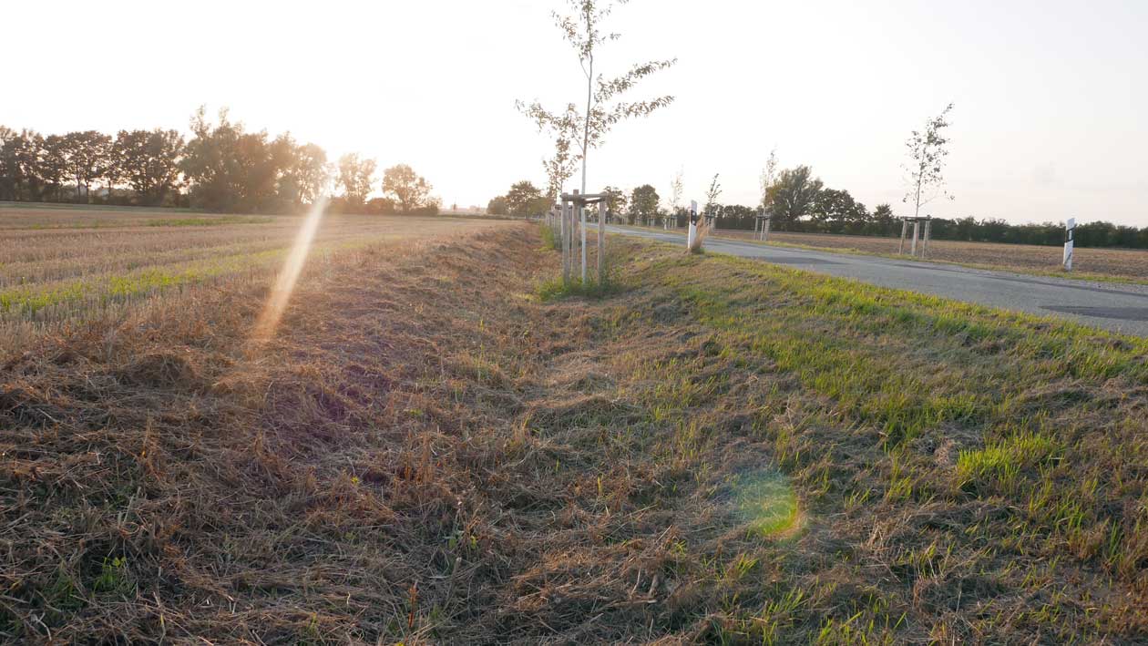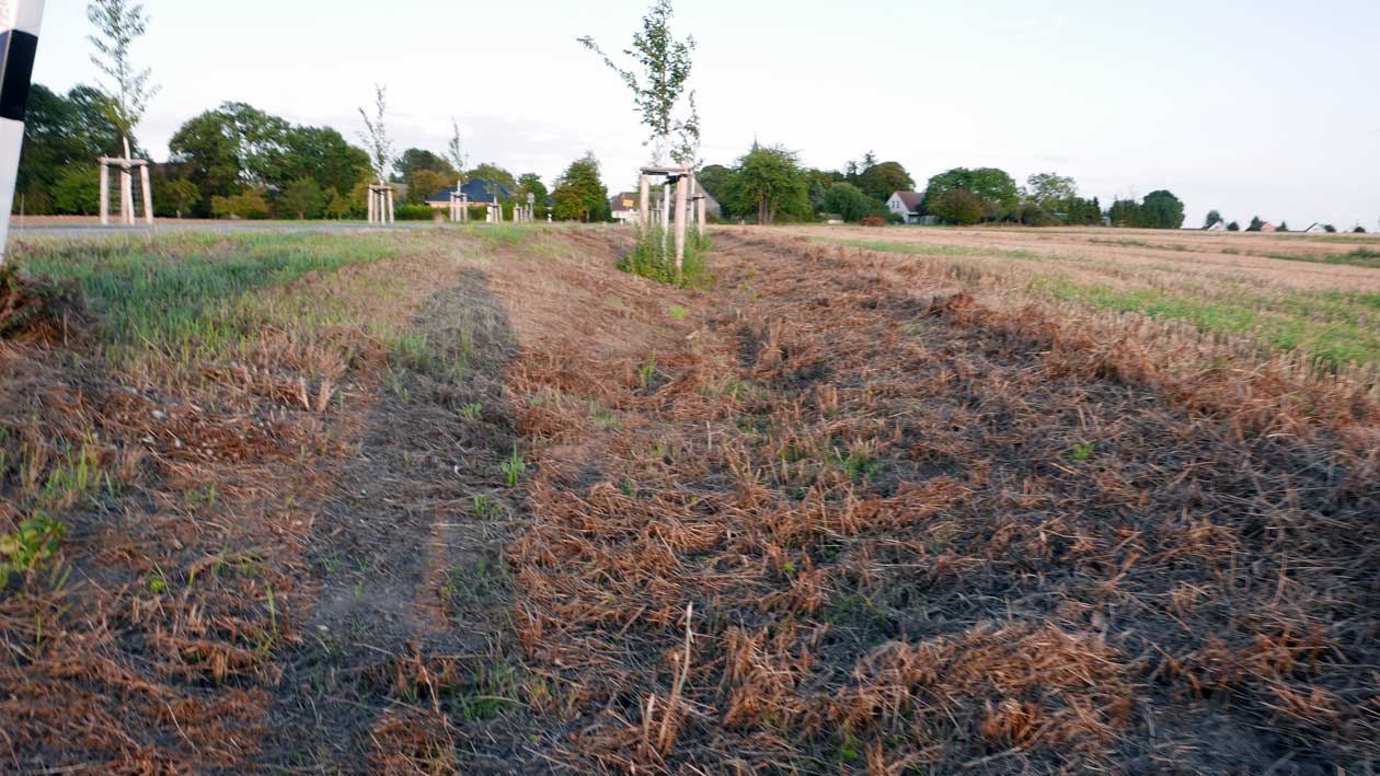 Die Feldseite ist in der Färbung deutlich weniger grün, wie mit Unkrautvern. behandelt. Und die Feldkante unzulässig nahe herangepflügt.