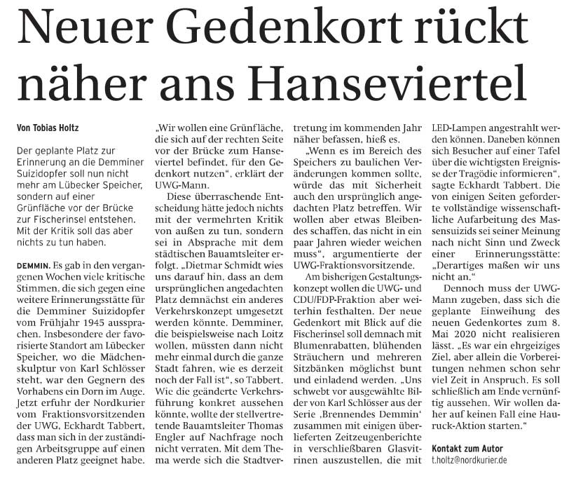 Zum Datum einer eventuellen Eröffnung, nicht der 8. Mau sondern der 1. Mai ist richtig. Und so ist das auch nicht eine Gegendemonstration zu eventuellen Befreiungsfeiern. Und nun zu den beabsichtigten Schautafeln. Tut das nicht. Ein Gedenkort der Toten ist keine Schule und diese Bilder von Schlösser sollten ganz anderen Räumen, geschlossen und der Stille vorbehalten sein. Da aber sind wir schon bei etwas Grundsätzlichem.
