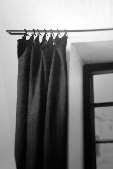 hinter geschlossenem Vorhang die Bühnenbilder entfernt