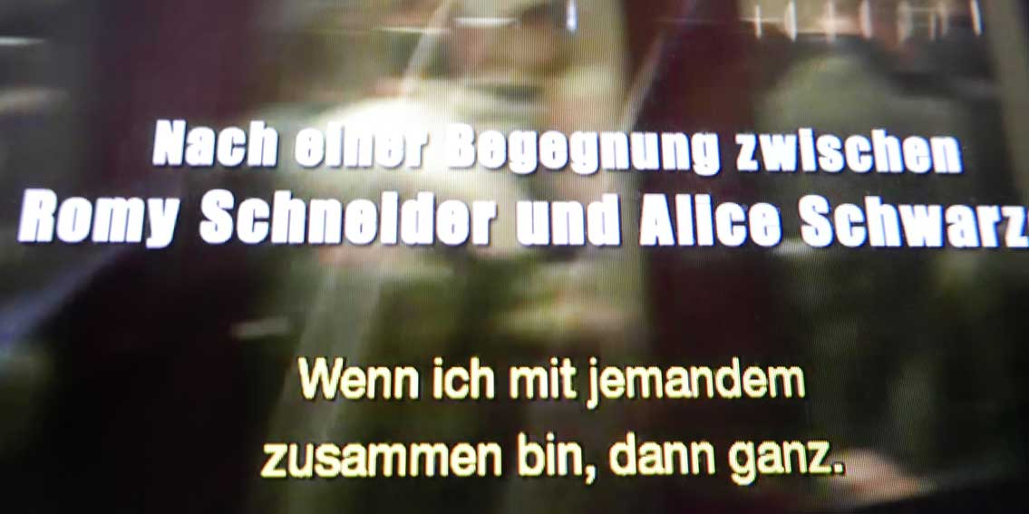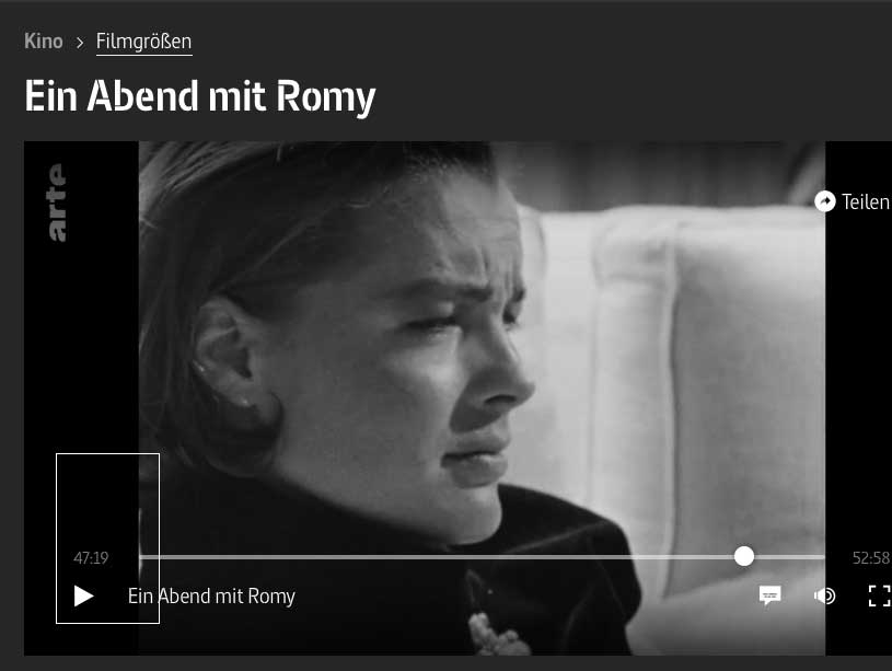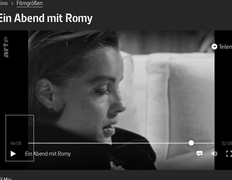 Und wieder . Durch Zufall im Fernsehen. Romy in der Hand derer, die sich ranschmeissen, plündern, missbrauchen, das Geklaute in neue Zusammenhänge bringen ihrer Verschwörungstheorien, der eigenen Interessen, arme Romy, das hört nicht auf. Das damalige Geschmeiss war noch dem Metier, aus dem sie kam, verwandt, jetzt gehts um die Seele selbst Herzoperation. Hatte versucht sie rauszuhalten, frei von dieser Meute, jetzt schon als filmisches Konstrukt am ernstzunehmenden Ort in die Jauche gefallen.