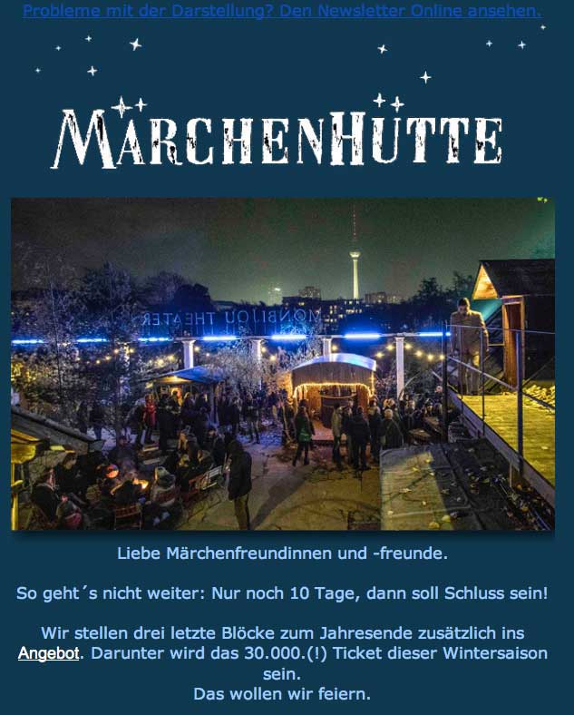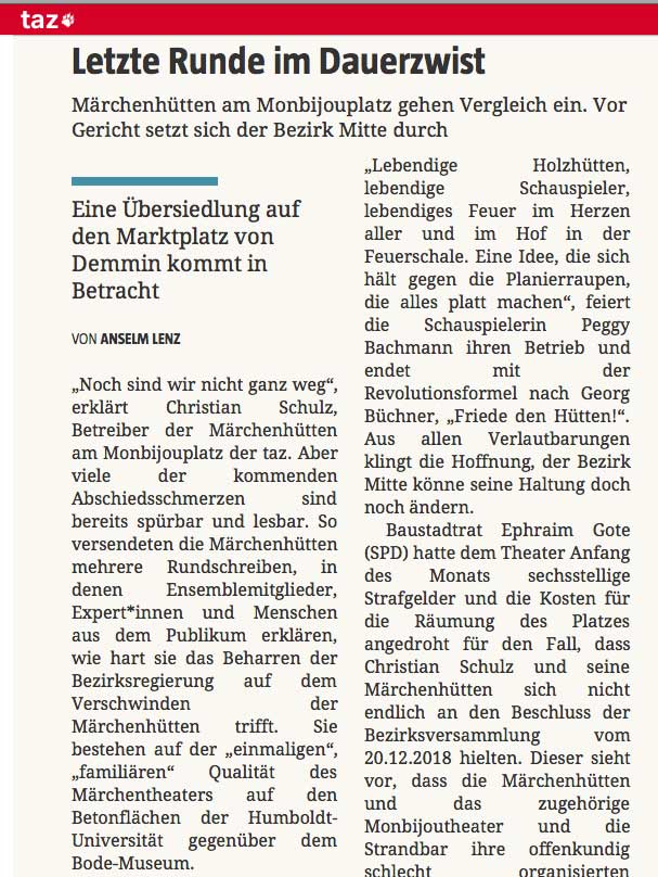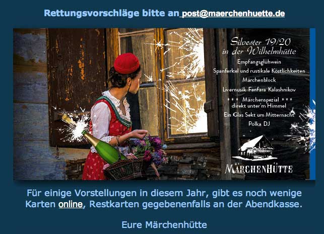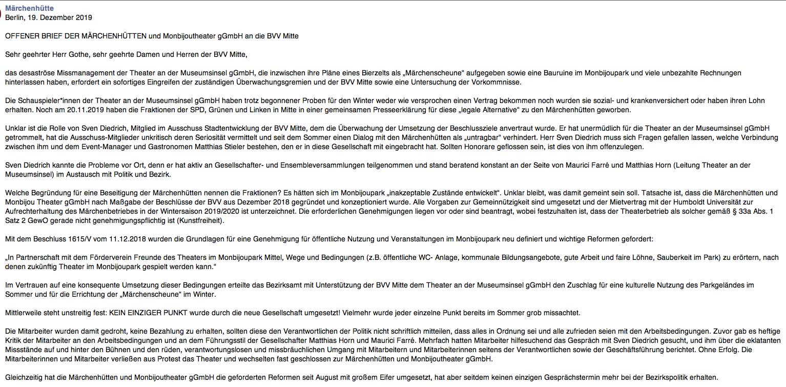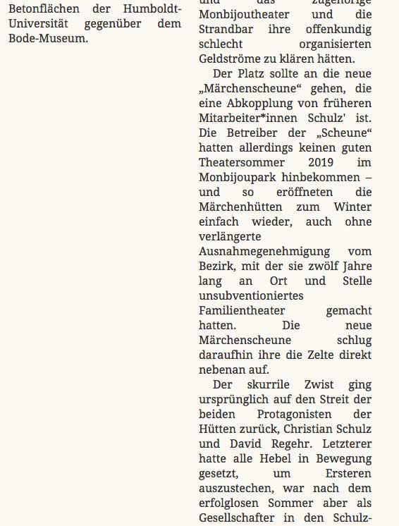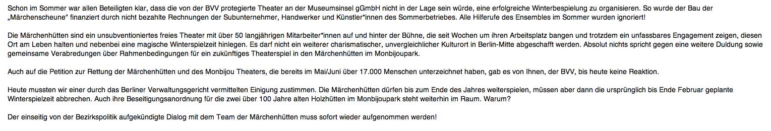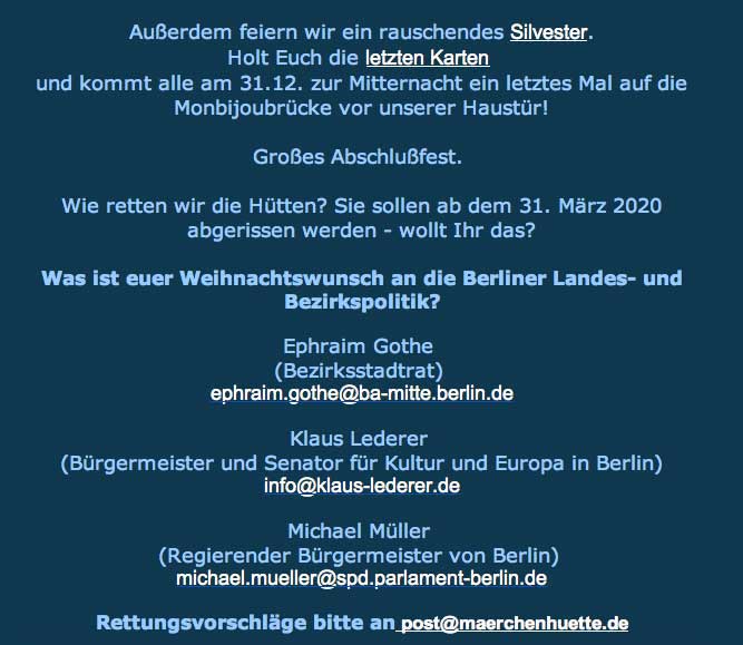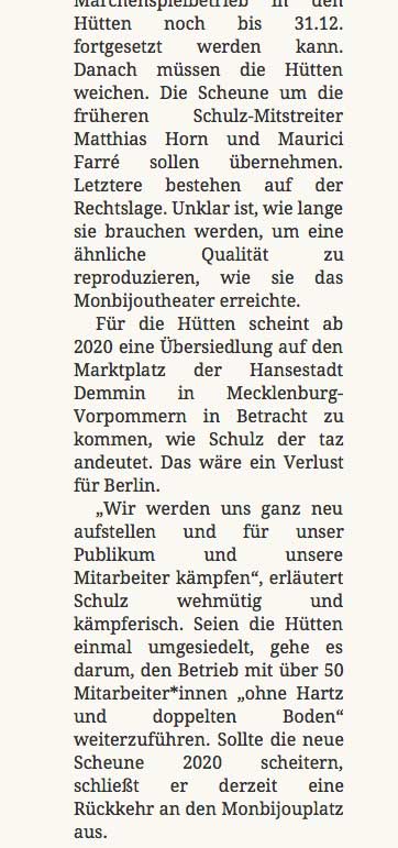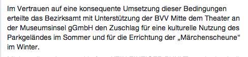 so hiess es von Seiten der Stadt Berlin zugunsten der anderen, die sich da eingenistet haben und die nun pleite sind. Den anderen hier, den Freunden, die nun die 30 0 00 Karten zur Weihnachtsaison 2019 verkaufen gekündigt und vertrieben. Die Stadt Berlin machts möglich.