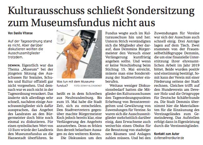 In Demmin demnächst Geschenke ganz anderer Art, an Demmin und aus Demmin vielleicht.