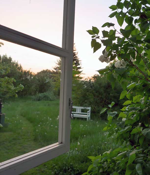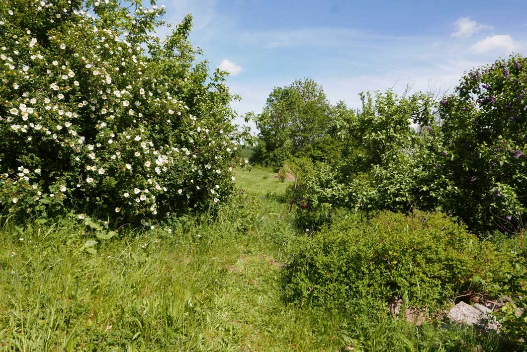 der Zeit vor der ersten Mahd mit den ersten Rosenhecken und des Flieders vor dem Jasmin