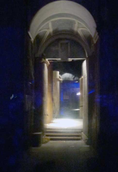an seltsamen Hallen vorbei mit gähnendem Schlund der dunklen Leere