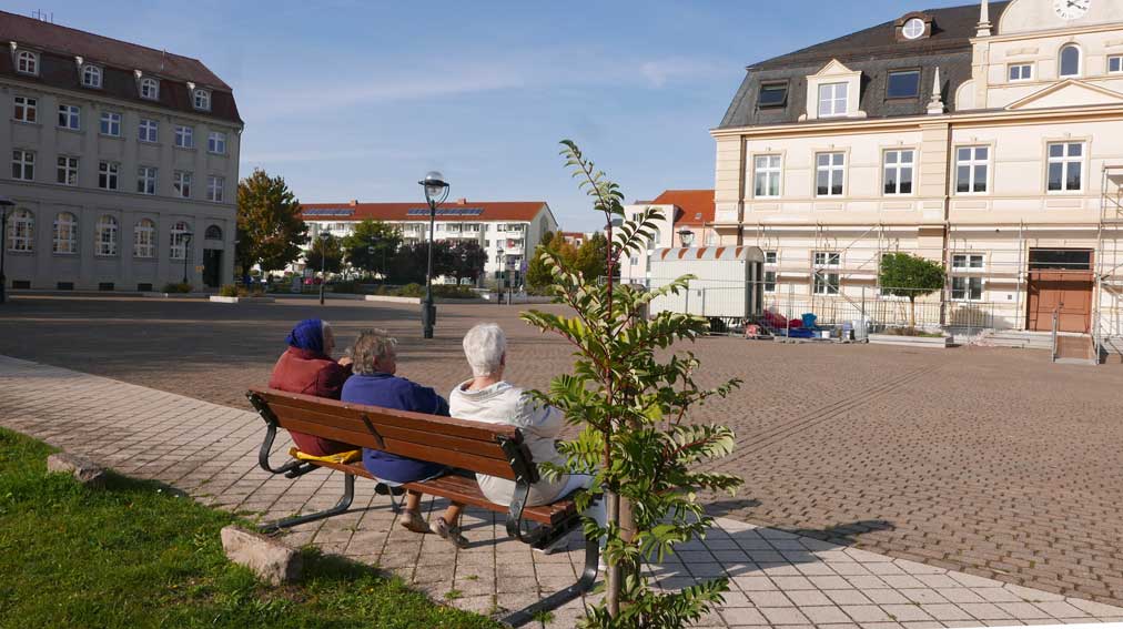 warum in Stavenhagen und Anklam und warum nicht in Demmin, wo am Markt sitzen kann unter Dachen und jederzeit.