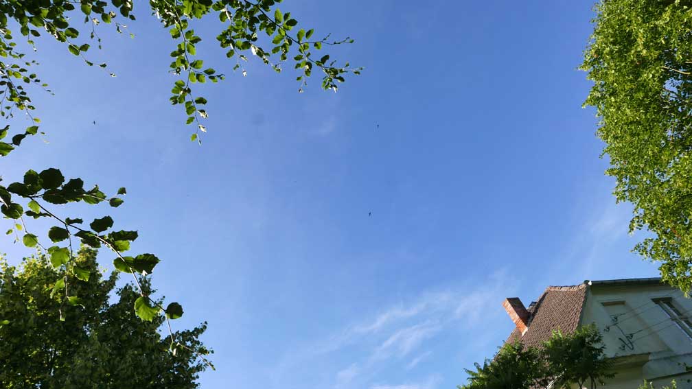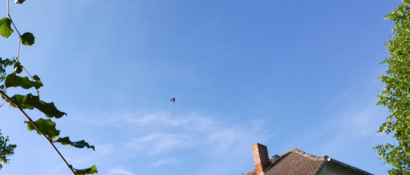 die Routen der Vögel gehen von links nach rechts und von rechts nach links über uns und von der Kirche zu den Feldern oder von dort zurück