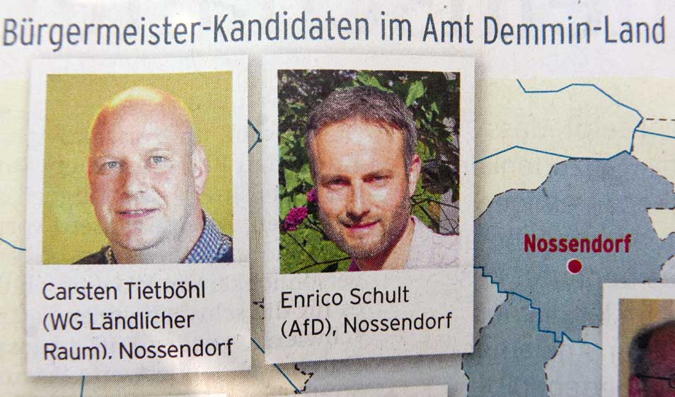 Wir empfehlen Jörg Schneider, den jeder kennt ihn inzwischen als einen unserer Freunde. Und wir brachten schon viel, (den Turm der Kirche und die Orgel jetzt und wenn da jemand von N. weiss in Schwerin und in der Welt. So könnte auch noch viel mehr entstehen, wenn ihr nur wollt, allen zu Freude und Vorteil. Sonst gehts nach Demmin. Denn wir wissen mehr