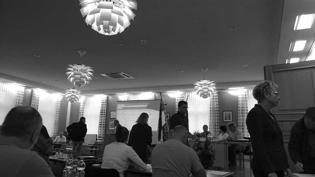 Der Raum des Rathauses, wo man sich trifft, Gäste und alle Sitzungen, sollte auch sich seines Ernstes bewusst werden. Mit schnellem Griff und geübten Auge schon wäre Erstes getan. Allen zur Freude.
