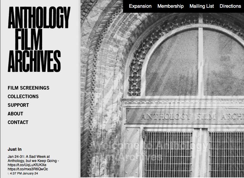 In New York gibt es das Anthol.Film Archives von J.M.wo besondere Filme laufen. Ein ganzes Haus.