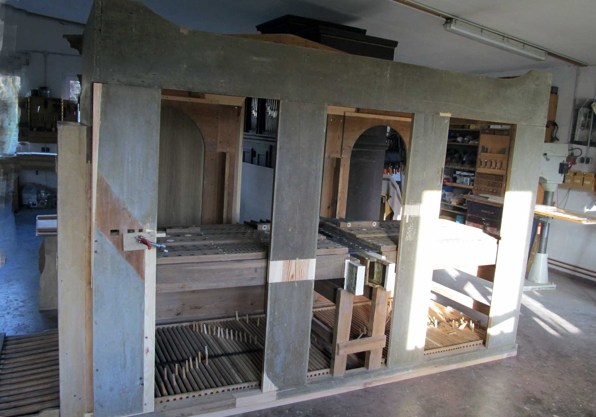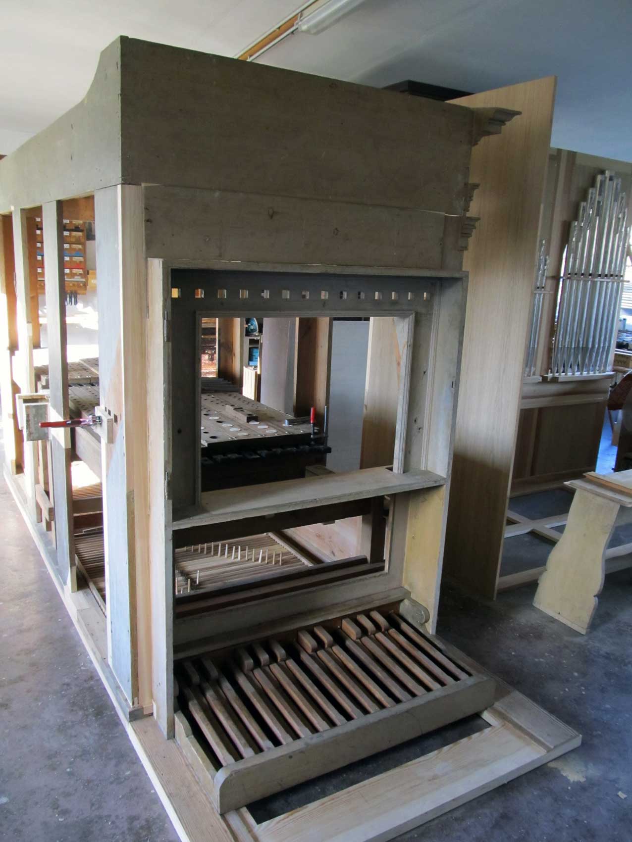 Die Orgel für Nossendorf in der Werkstatt weiter