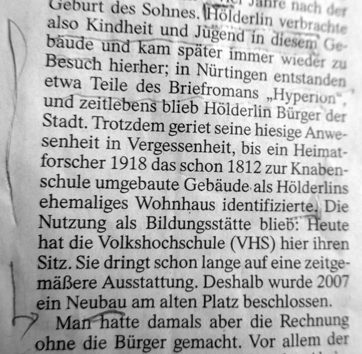Nürtingen dem Ort der Geburt gewidmet