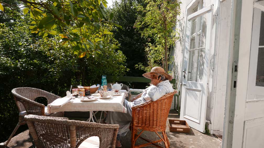und das im jetzt blauen Zimmer, wo die Mädchen in den Sommern schliefen, zu Gast. Als einziges erhalten. Wo der Schnee dann reinwehte als wir wiederkamen.