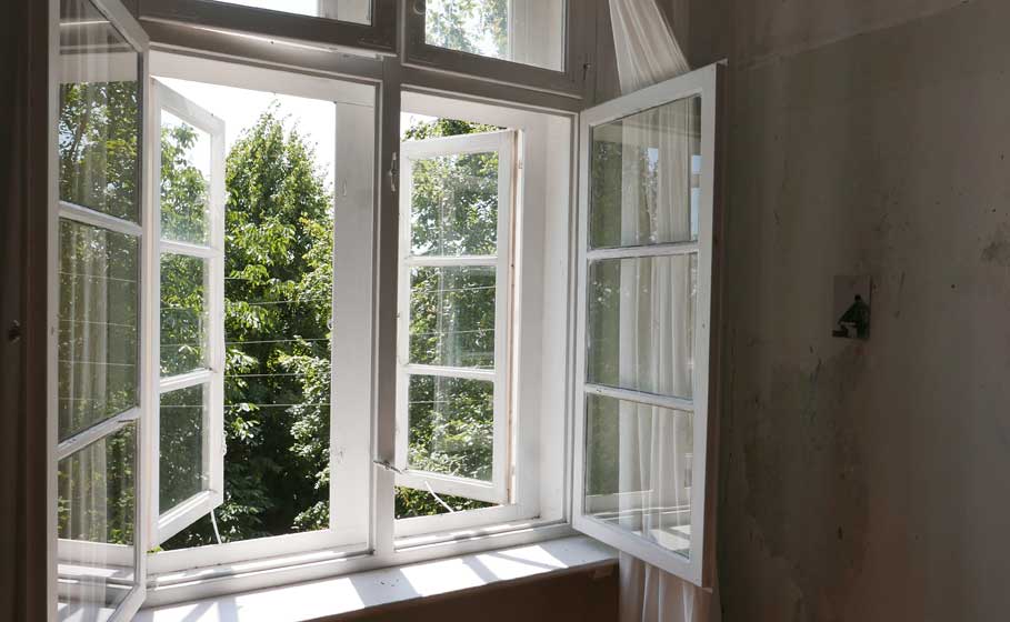 die Terrasse, der Park der Bäume, die Fenster und Türen nie mehr