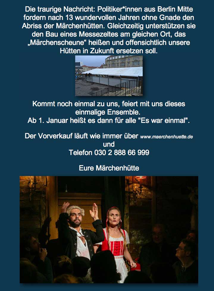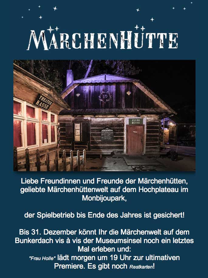 Berlin . An der Stelle der ursprünglichen Hütte für die Märchen wird es nun ein Zelt geben in Hallenform. Von der Politik so gewollt. Welcher.