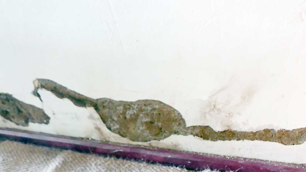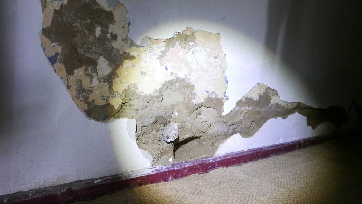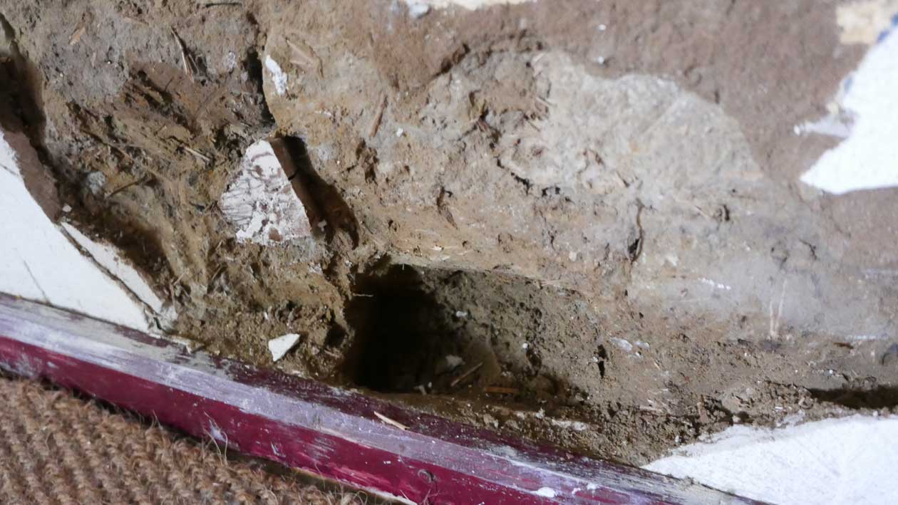 Der Lehm um das alte Bleirohr soll nun trocken bevor dort alles wieder verschlossen wird