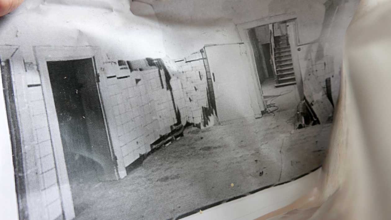 Zum ersten Mal tauchte Nossendorf 1984 in Paris auf, auf der Bühne des Theaters, dann im Film in DIE NACHT auf . Mit brennen den Wäldern am Horzont, wie die Stadt Demmin. Und 2003 war das Haus wieder betretbar und die Küche sah so aus. Zugemauerte Fenster ohne Türen, einen Ruine für den Abriss bereit.
