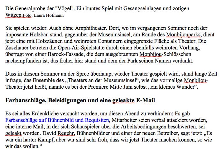 Die Vögel von Aristophanes in der Übersetzung Goethes im Theater des Monbijouparks Berlin