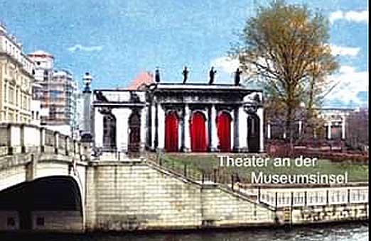 Mit einem gemalten Prospekt der Fassade von Schloss Monbijou am Platz seiner ehem. Existenz war dies Theater neu geplant. Die Striche durch die Rechnung -immer an der Stelle des vorigen Amphitheaters hier- führten nun zu anderen Lösungen eines Trotz Dems.