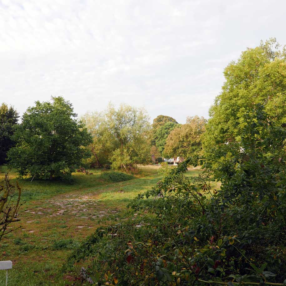 der Park, das Feld und das Rohr, statt des Grabens - und wo er einmal war und wieder sein lönnte(rote Linie)