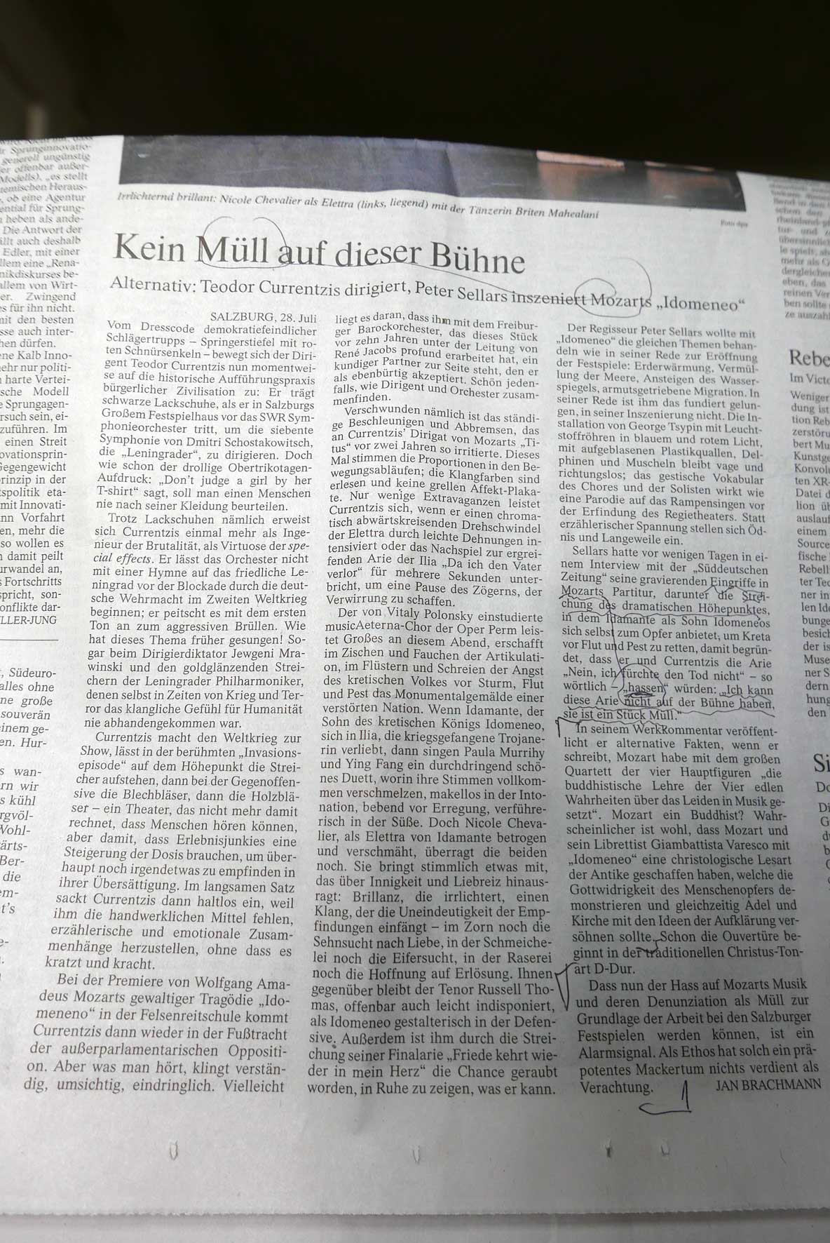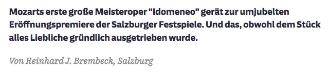 FAZ, Kritik zu Idomeneo. In Salzburg Festspiele, Eröffnung.