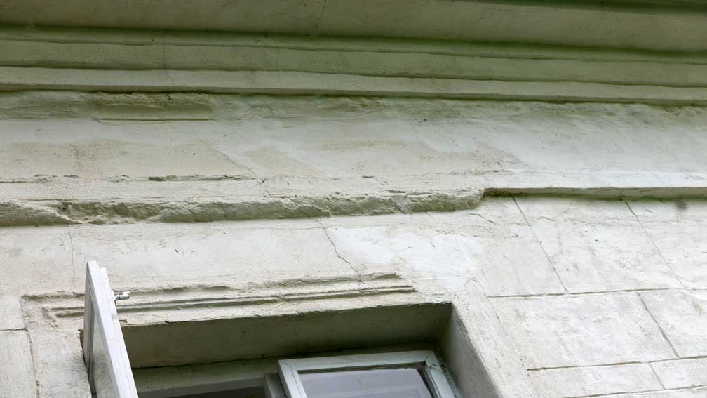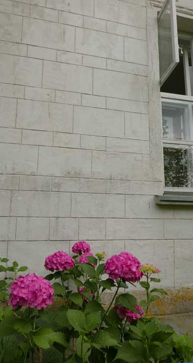 es ist diese Wand, die einzige, die überlebte, von aussen mit den Fensterreliefs