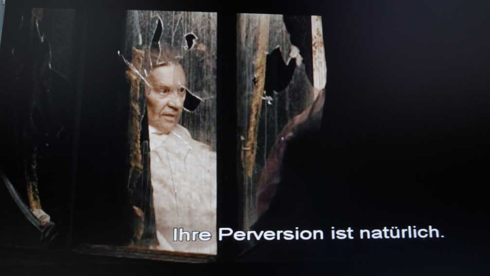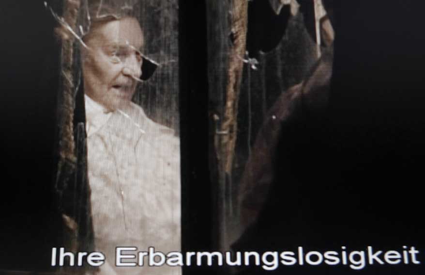 aber noch sind wir auf dem Land der Mutter des Regie bei Bremen. So wird der Arzt -Blutdruck in Ordnung- für mentale Fälle besucht. Und wir sind dabei zu hören wie soviel im Inneren verstaut nicht rauskommt und wenn er lächelt dazu.