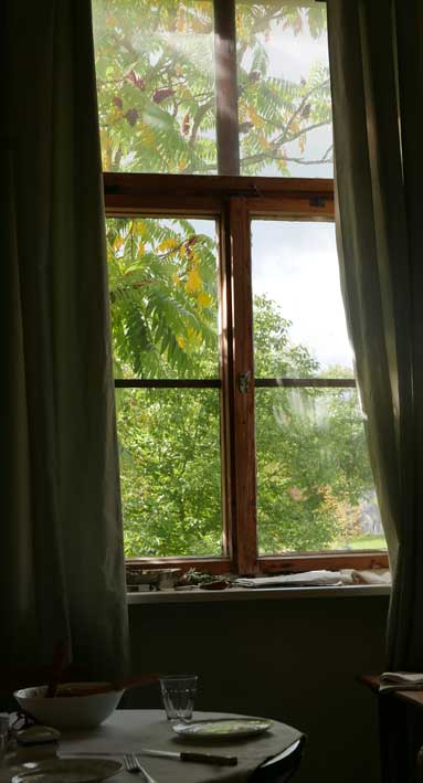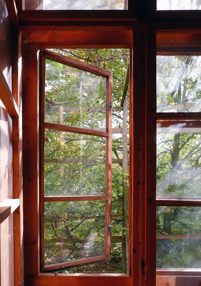 wie von innen aus dem lange verschlossenen, zugemauerten Fenster nun wieder Leben, erlöst.