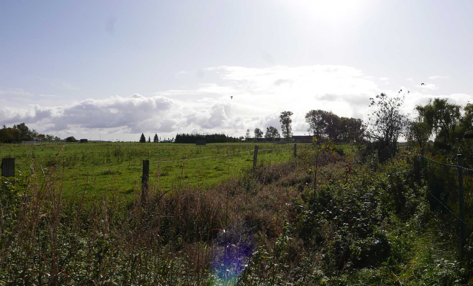 Das herbstliche Gras ungemäht in seinem silbrigen Samt. Aber unter die Regie des Wollens.