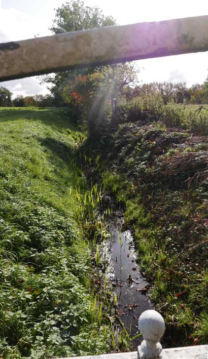 Und nun ungemäht auch der Graben bevor er zum Rohr wird. Angegeben als wichtigster Zufluss aus dem Dorf nun als verkrautetes Drecksloch einer ausgetrockneten Lebensader? welchem Richter wollen sie so bestehen.