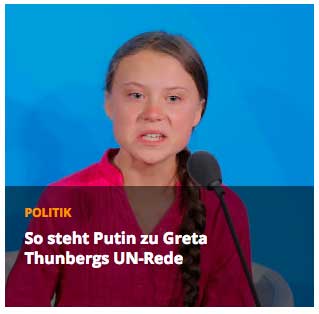 „Ich bin sicher, dass Greta ein gutes und sehr aufrichtiges Mädchen ist, aber die Erwachsenen sollten alles dafür tun, um Teenager und Kinder nicht in extreme Situationen zu bringen, und sie (die Kinder – Anm. d. Red.) vor übermäßigen Emotionen schützen, die die Persönlichkeit zerstören können (…)“, sagte Russlands Präsident.